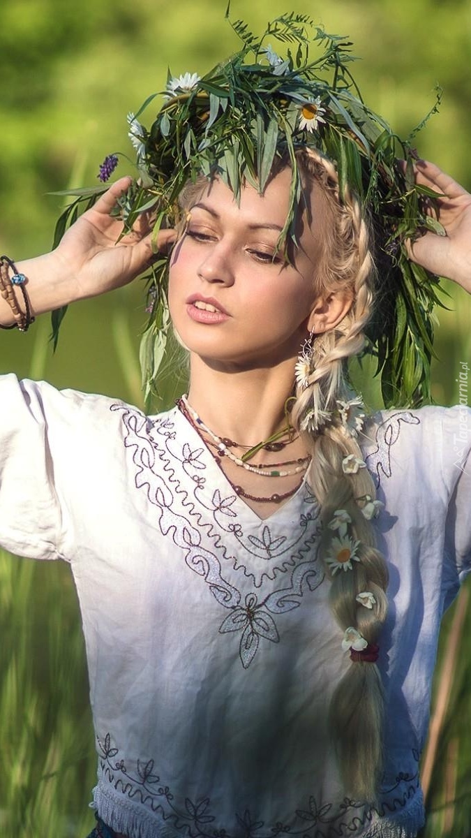 Edytor tapety: Blondynka w wianku z roślin