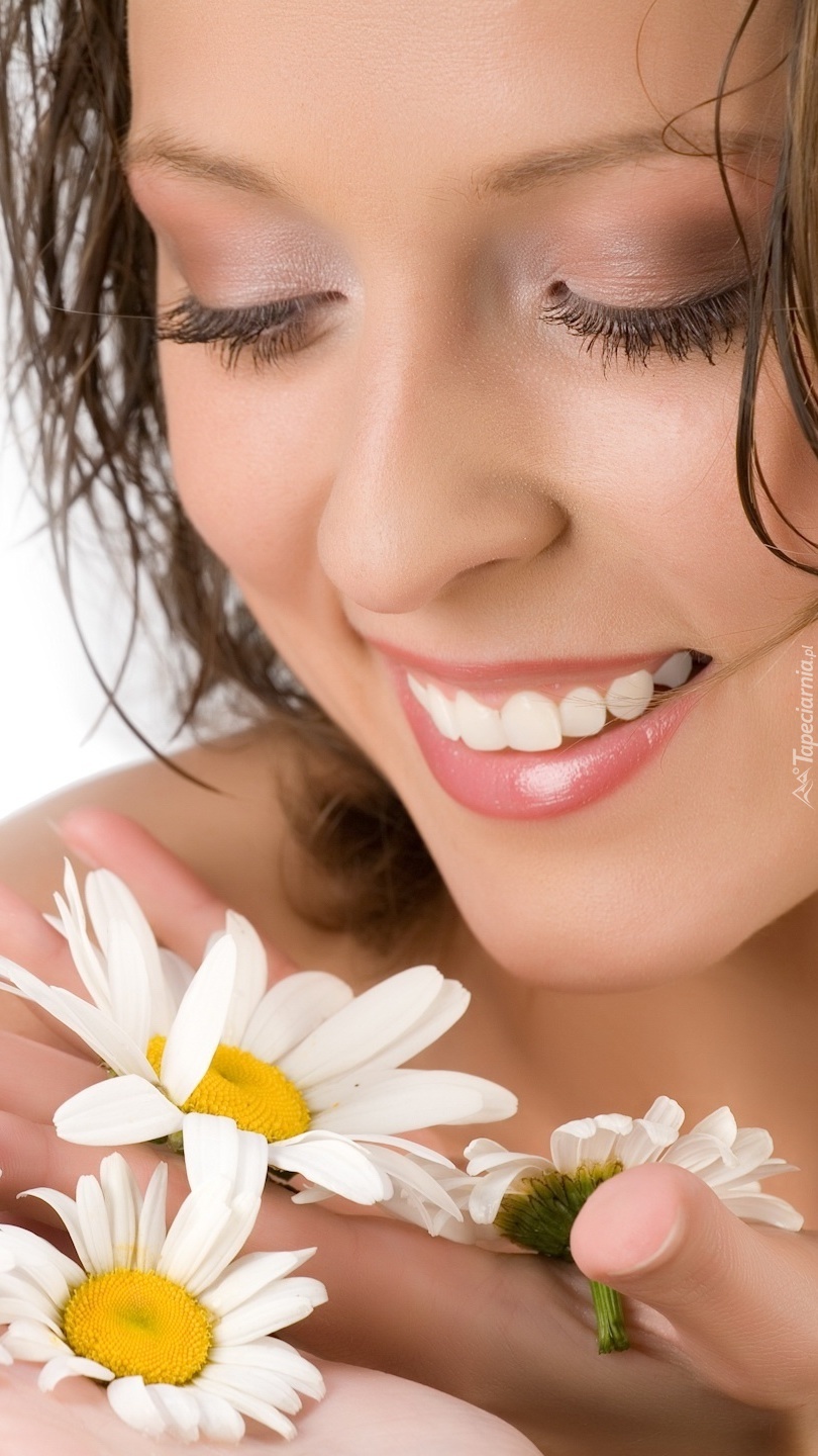 Edytor tapety: Uśmiechnięta kobieta z margerytkami