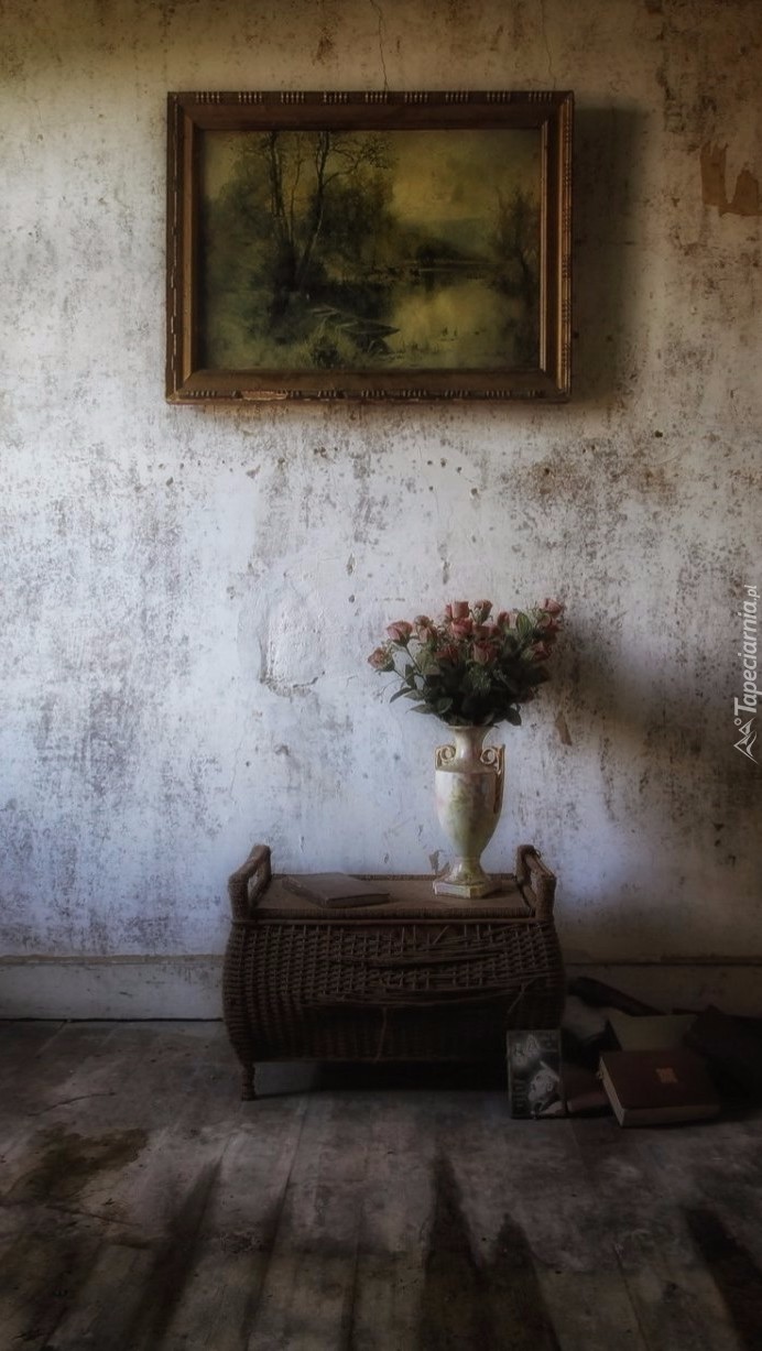 Edytor tapety: Obraz na ścianie w zaniedbanym wnętrzu