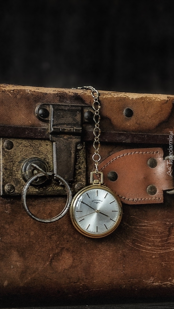 Edytor tapety: Stary zegarek kieszonkowy i walizka