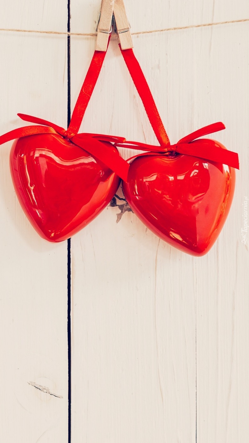 Edytor tapety: Dwa serca przypięte klamerkami do sznurka