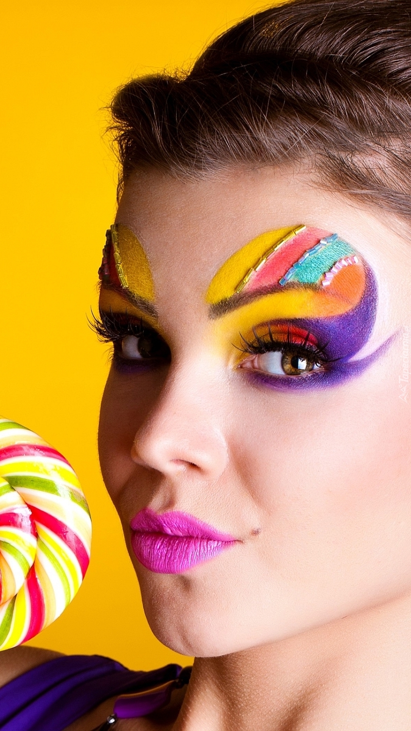 Edytor tapety: Dziewczyna w kolorowym makijażu i lizakiem