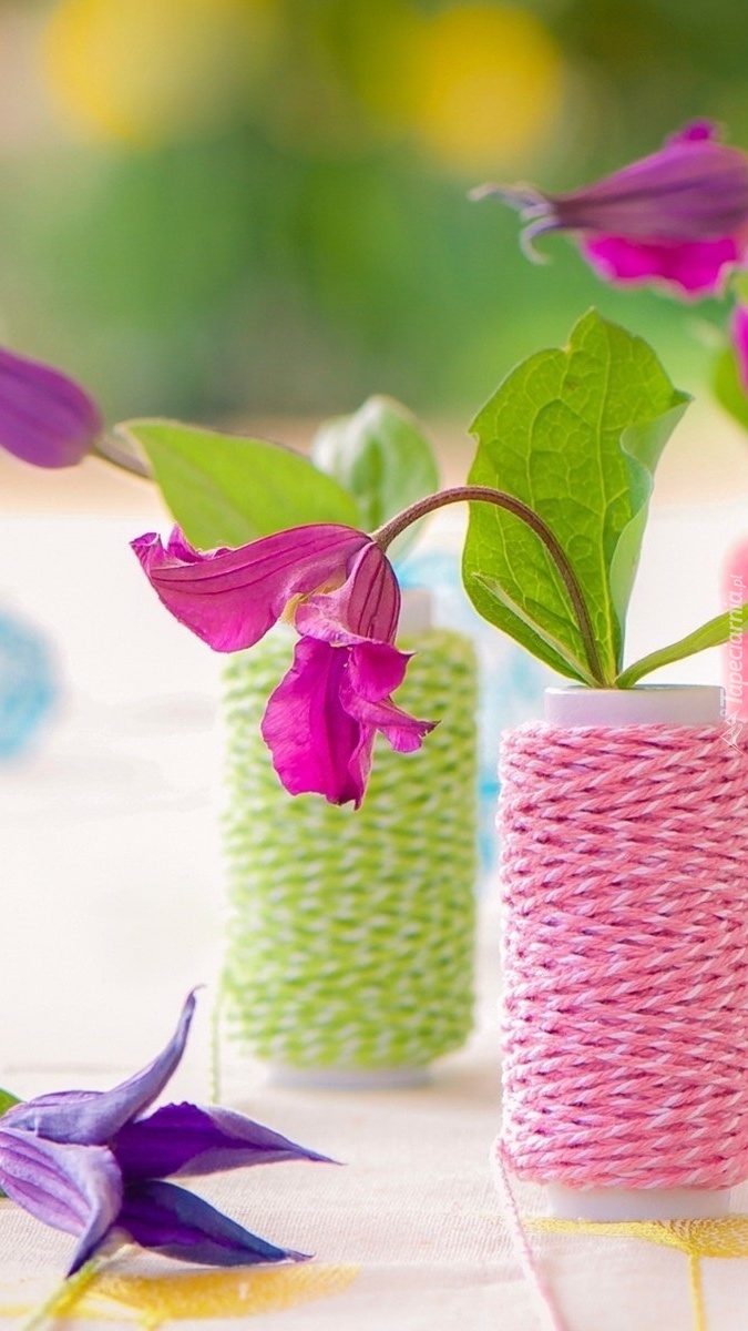 Edytor tapety: Kwiaty w kolorowych szpulkach
