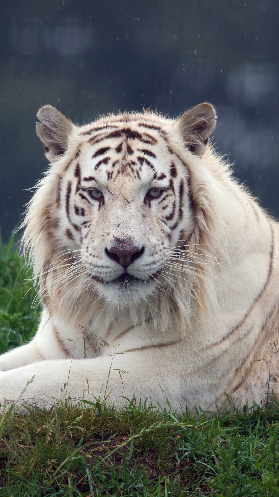 Edytor tapety: Biały tygrys na trawie