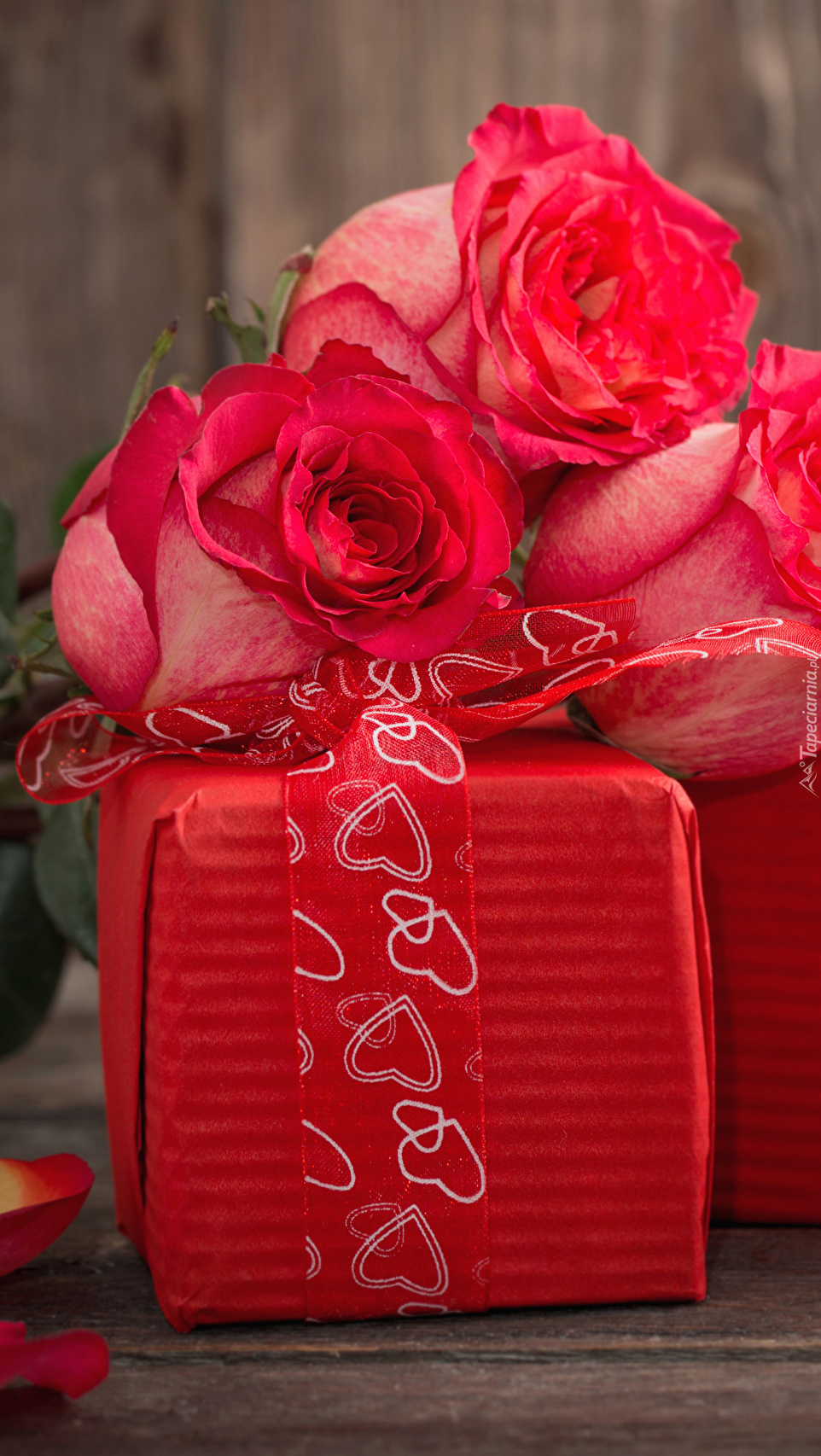 Edytor tapety: Czerwone róże z prezentem