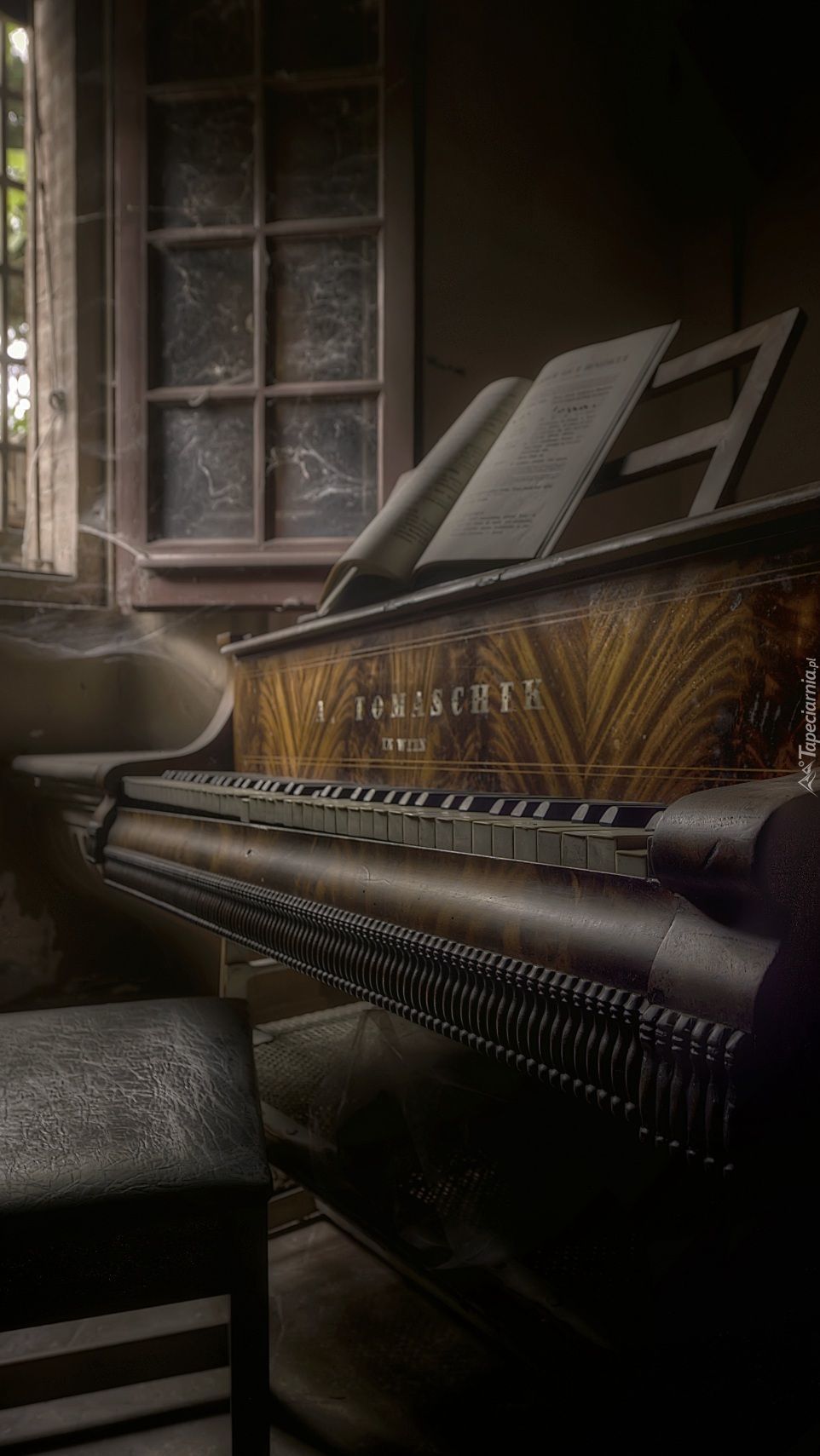 Edytor tapety: Pianino pod oknem w zaniedbanym pokoju