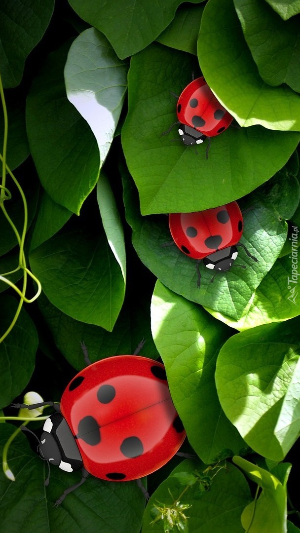 Edytor tapety: Biedronki ukrywające się pod liśćmi