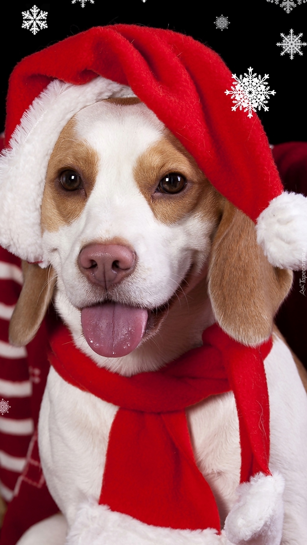 Edytor tapety: Beagle w czapce Mikołaja