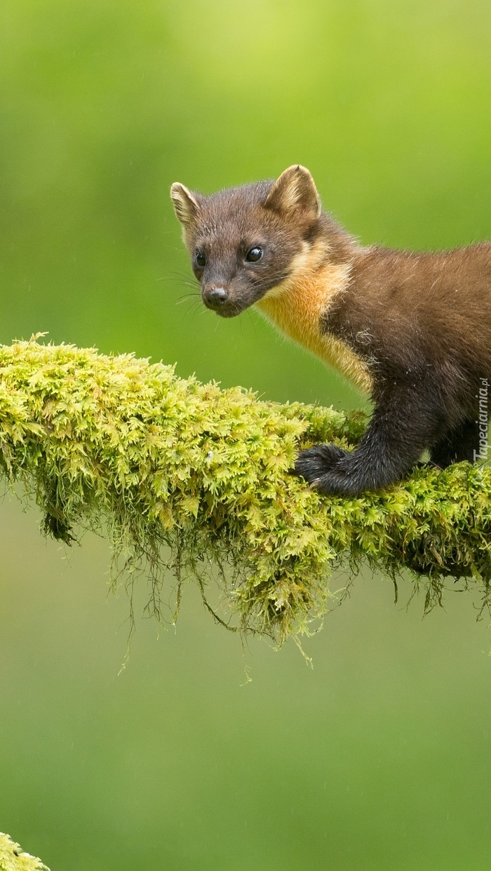 Edytor tapety: Kuna na porośniętej roślinami gałęzi