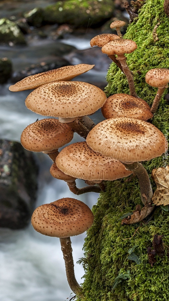 Edytor tapety: Opieńki na mchu nad wodospadem