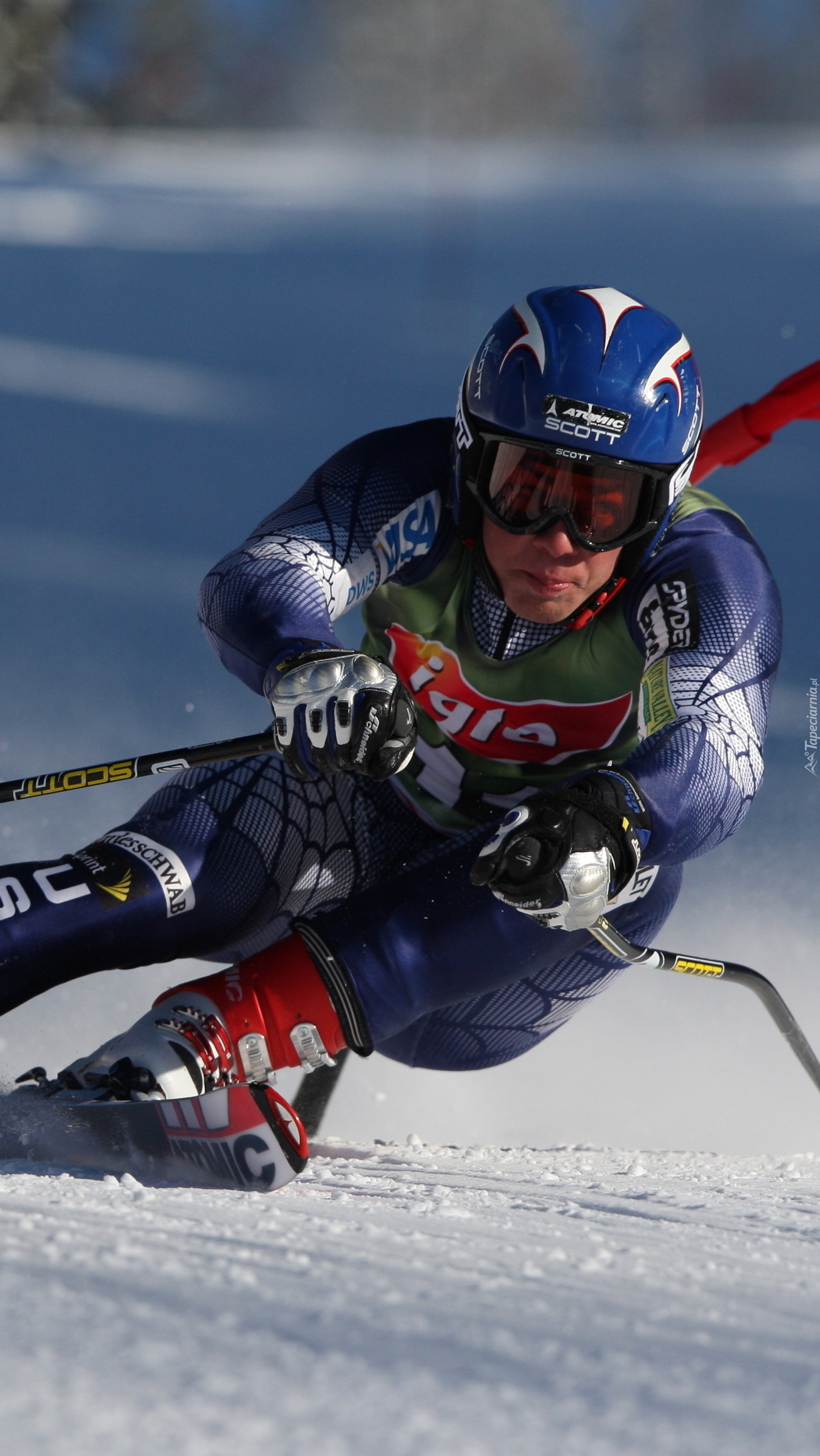 Edytor tapety: Narciarz zjeżdża ze stoku