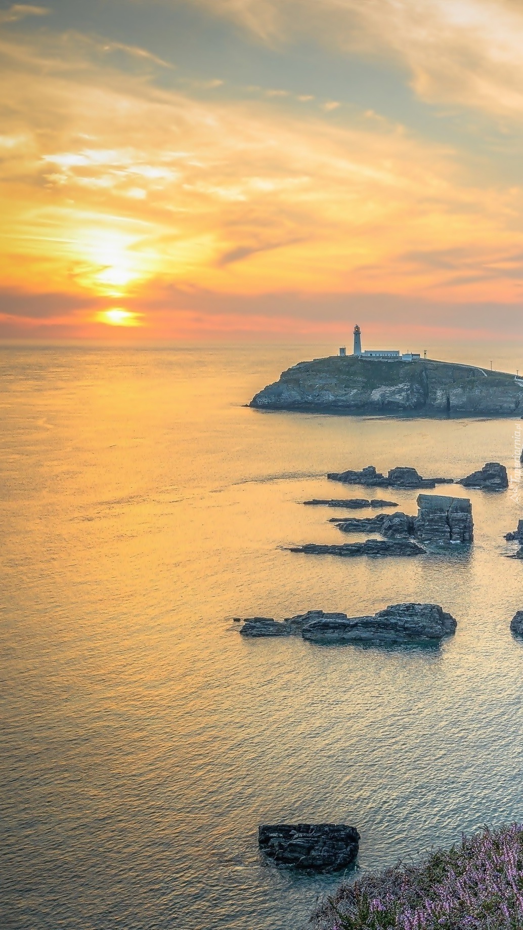 Edytor tapety: latarnia morska o zachodzie słońca