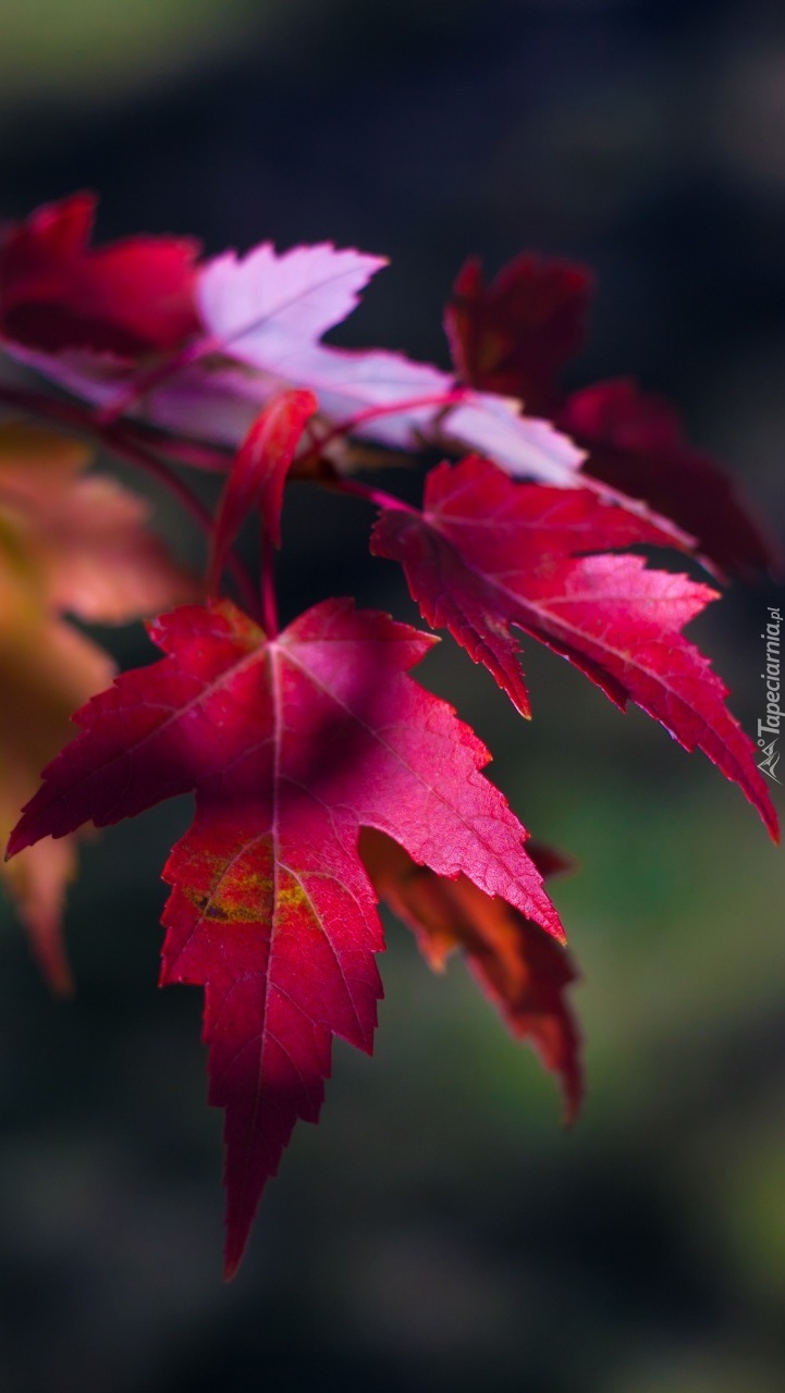 Edytor tapety: Czerwone jesienne liście w rozmytym tle