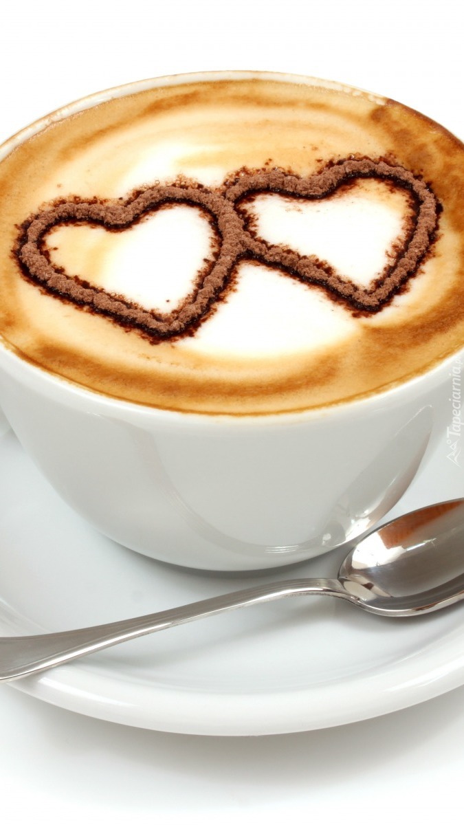 Edytor tapety: Filiżanka kawy z serduszkami na piance