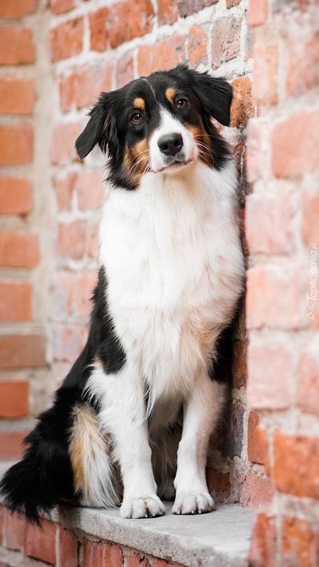 Edytor tapety: Owczarek australijski pod ścianą