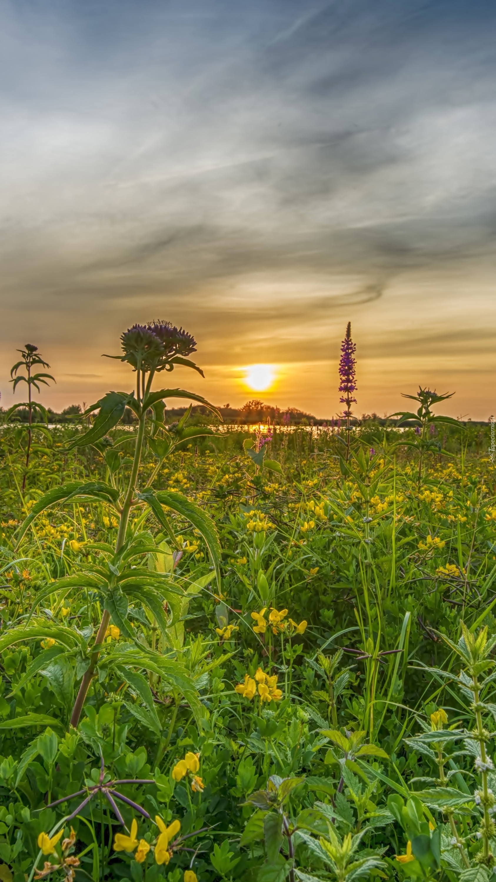 Edytor tapety: Roślinność nad wodą o zachodzie słońca