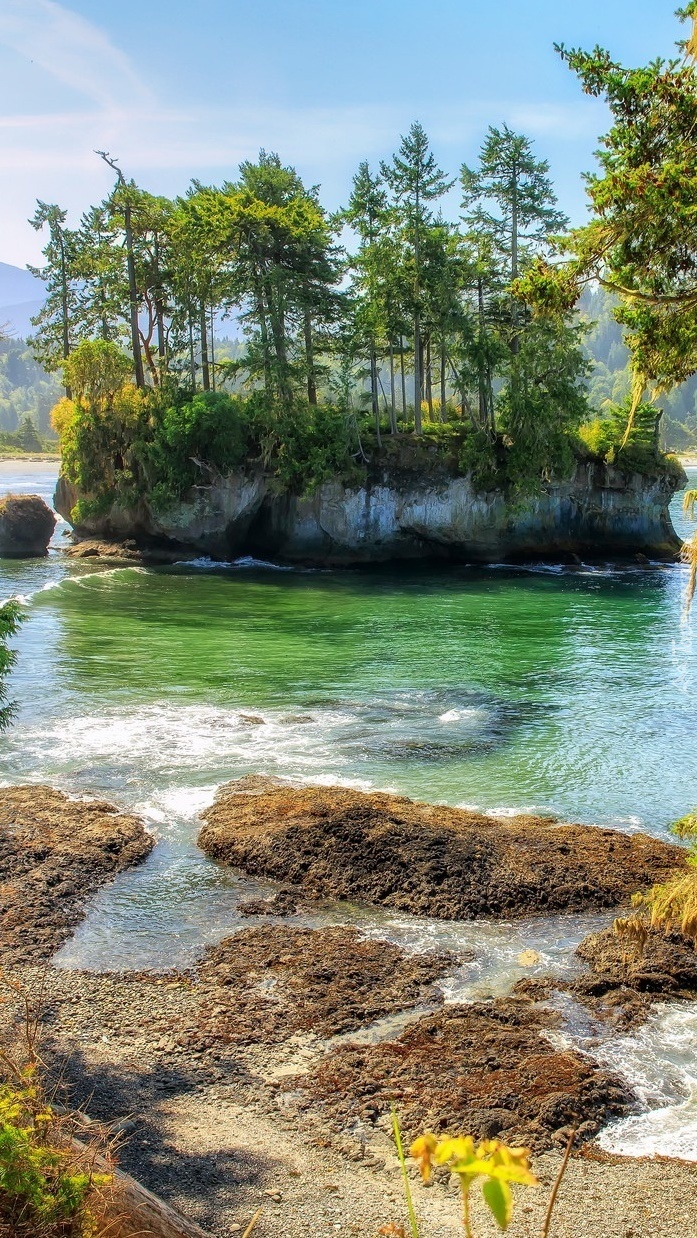 Edytor tapety: Porośnięta wysepka na jeziorze