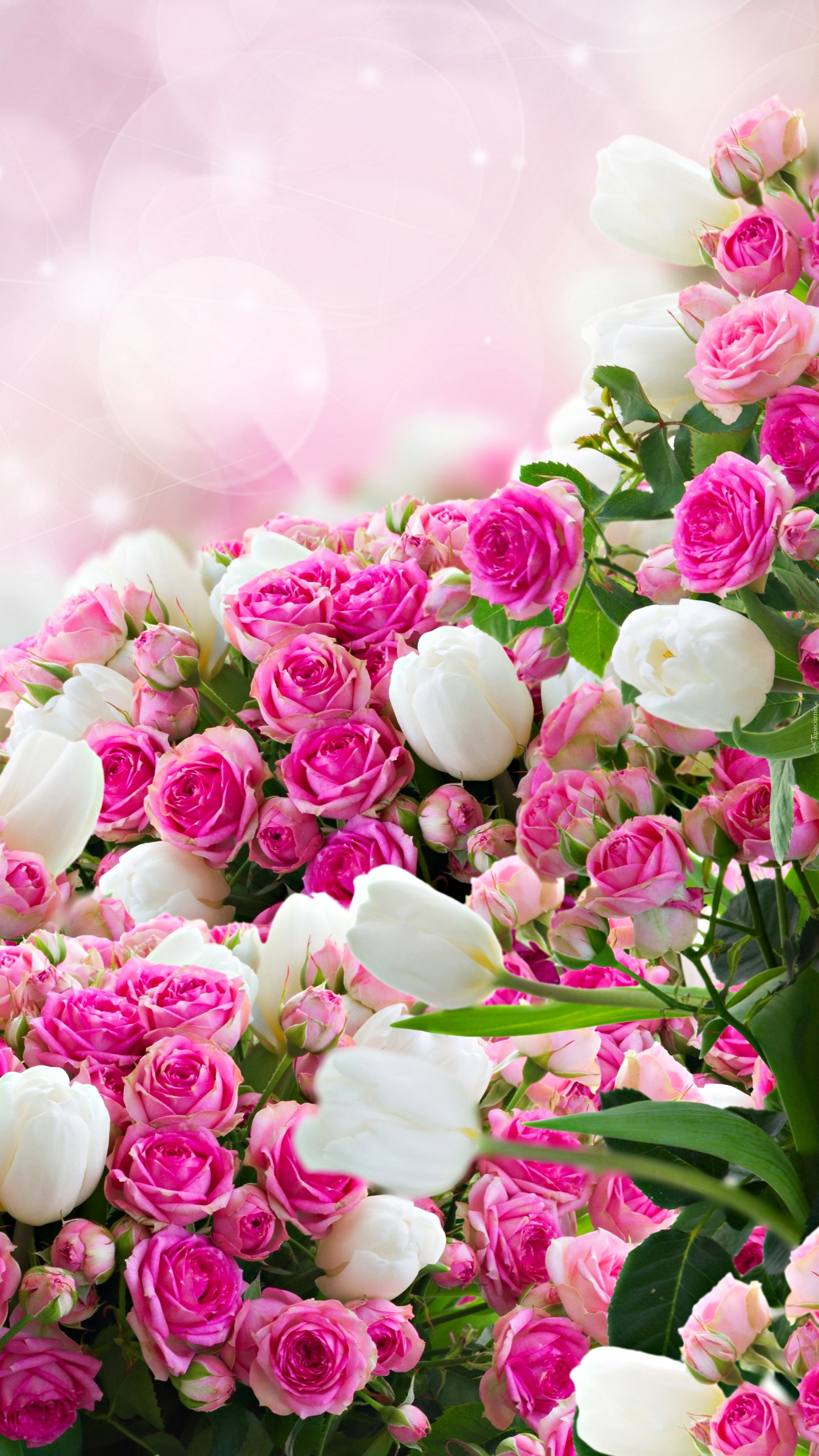 Edytor tapety: Białe tulipany wśród róż