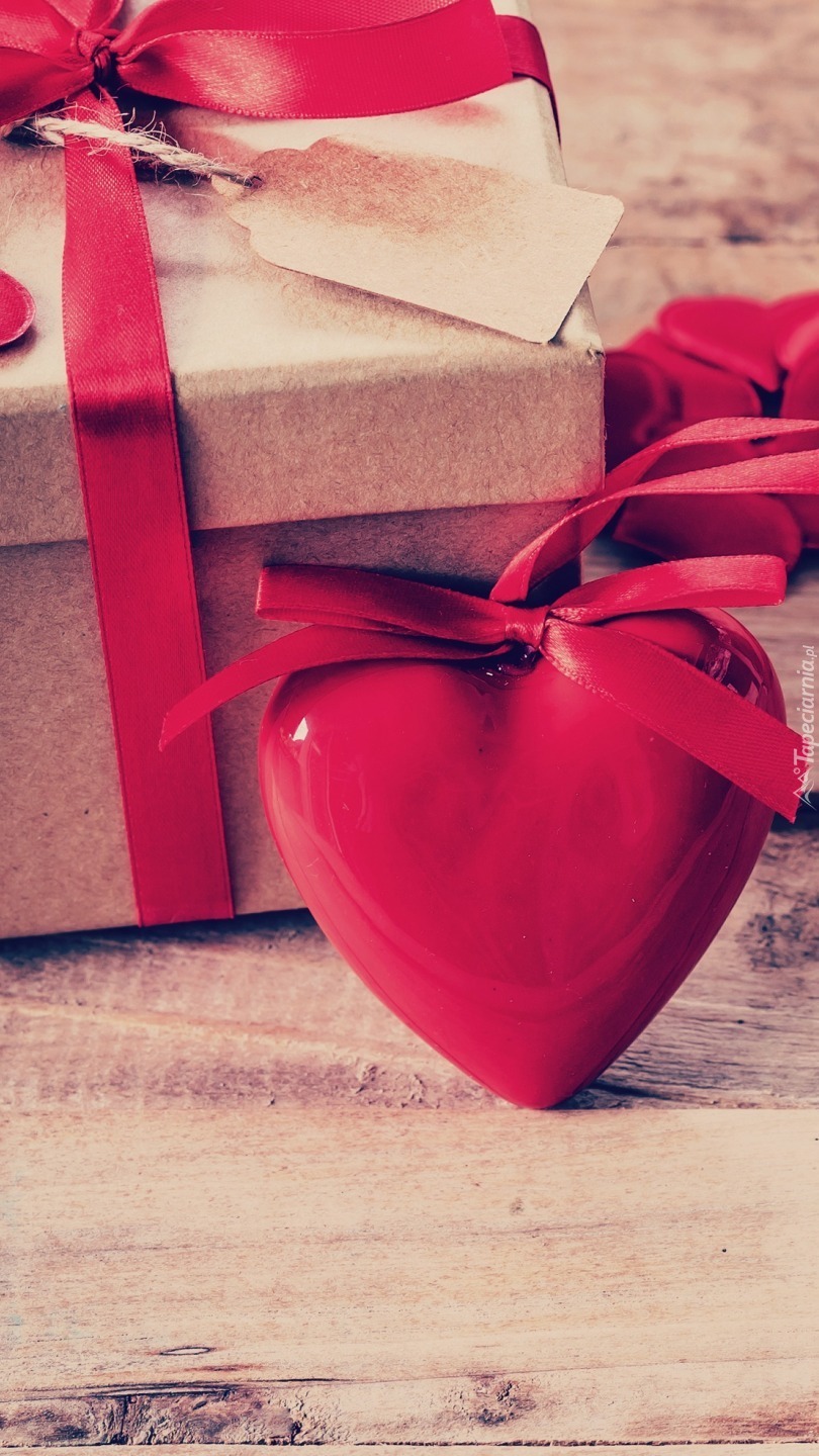 Edytor tapety: Serce ze wstążeczką oparte o pudełko