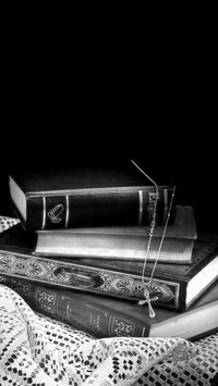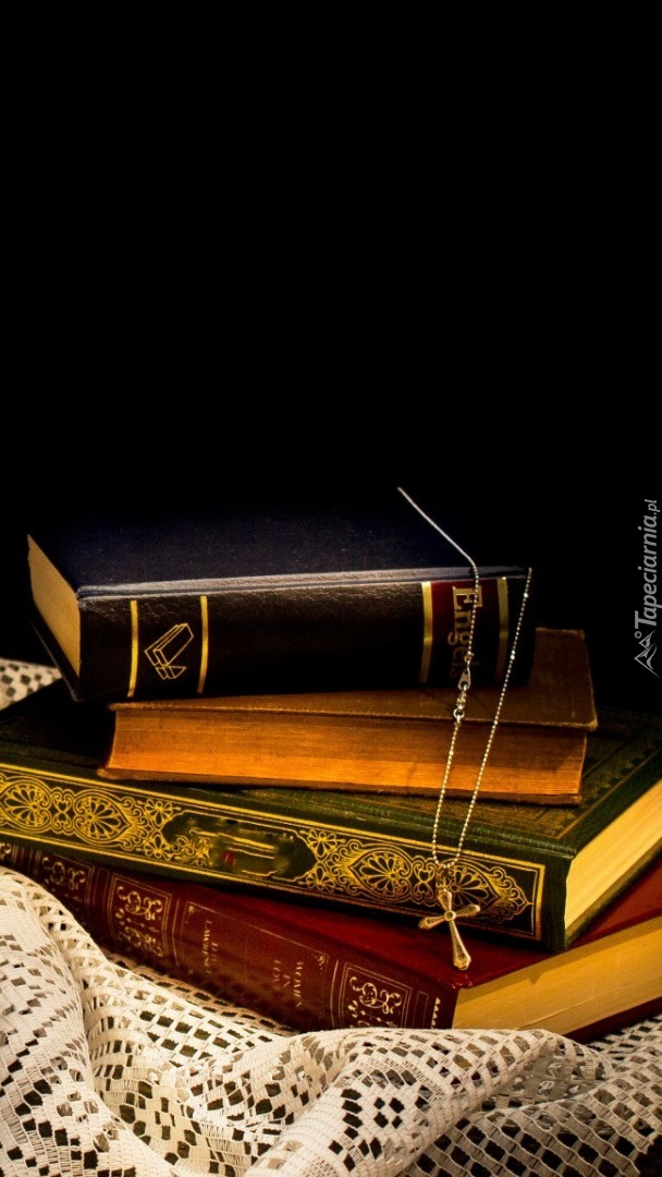 Edytor tapety: Łańcuszek z medalikiem na książkach