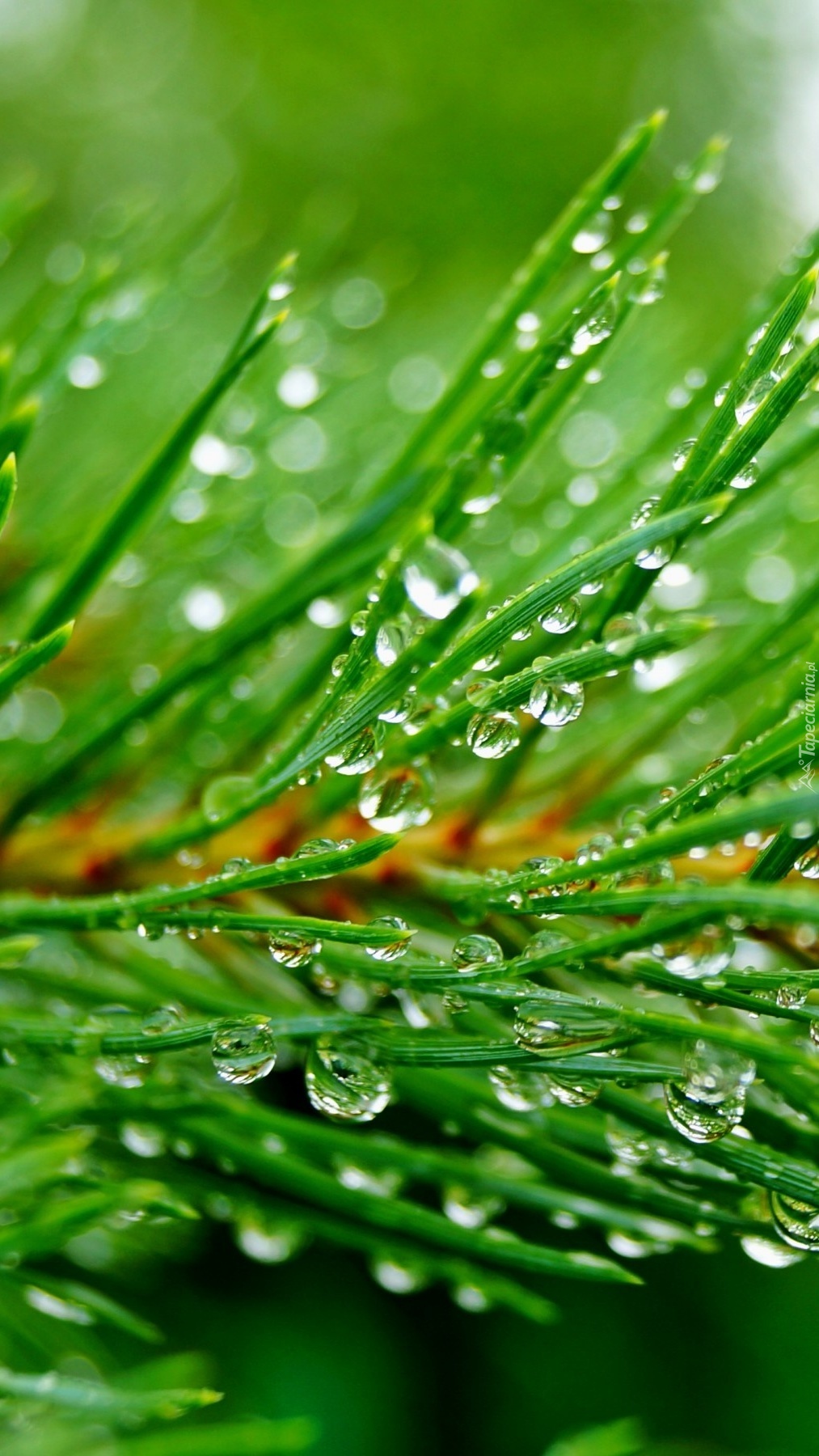 Edytor tapety: Iglasta gałązka w kroplach wody