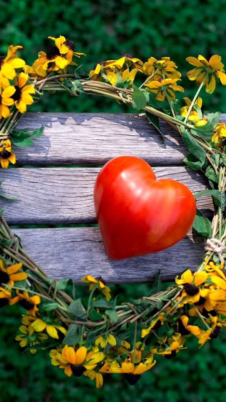 Edytor tapety: Pomidor w kształcie serca otoczony wiankiem