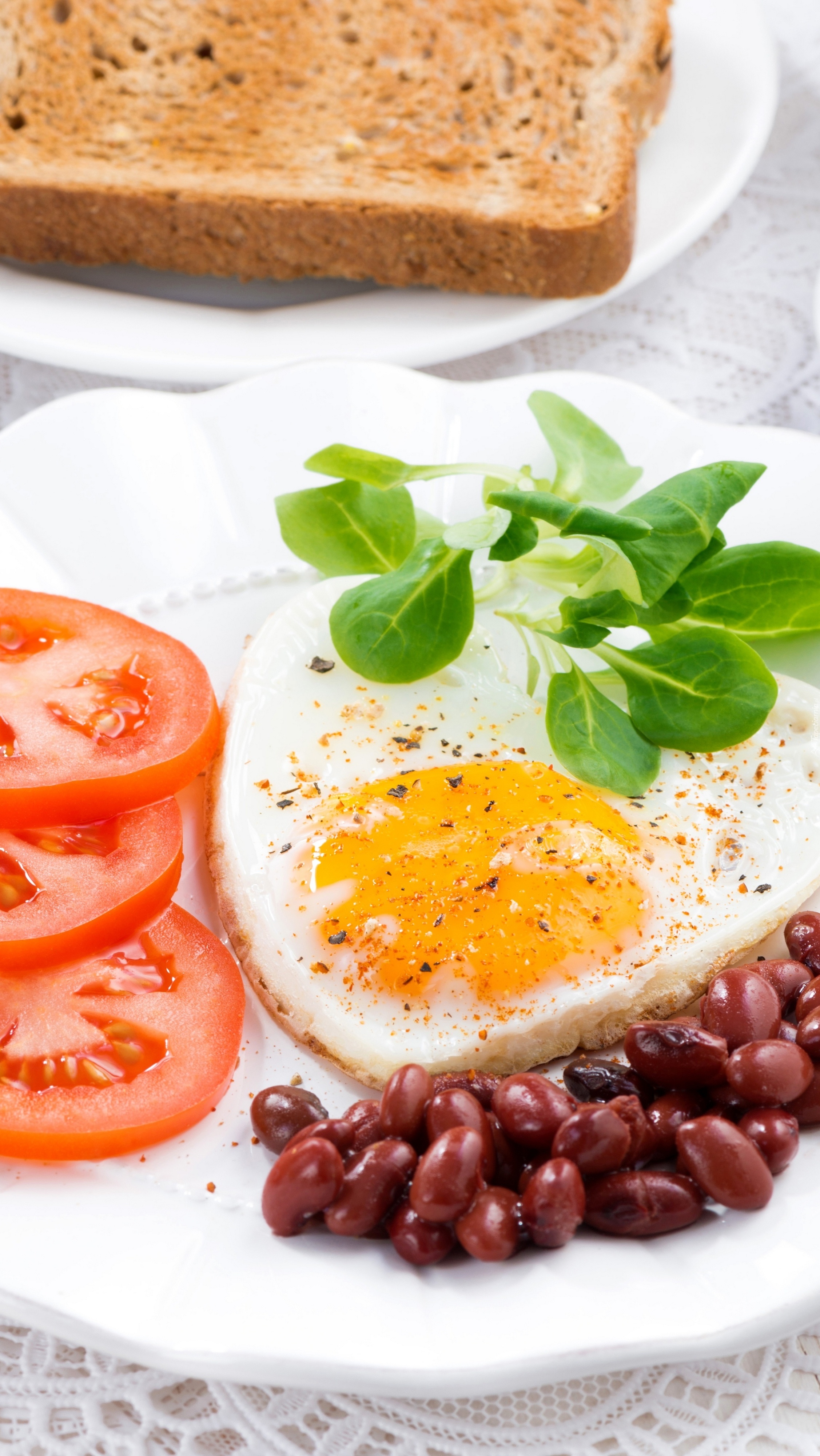 Edytor tapety: Jajko sadzone i pomidory na talerzu