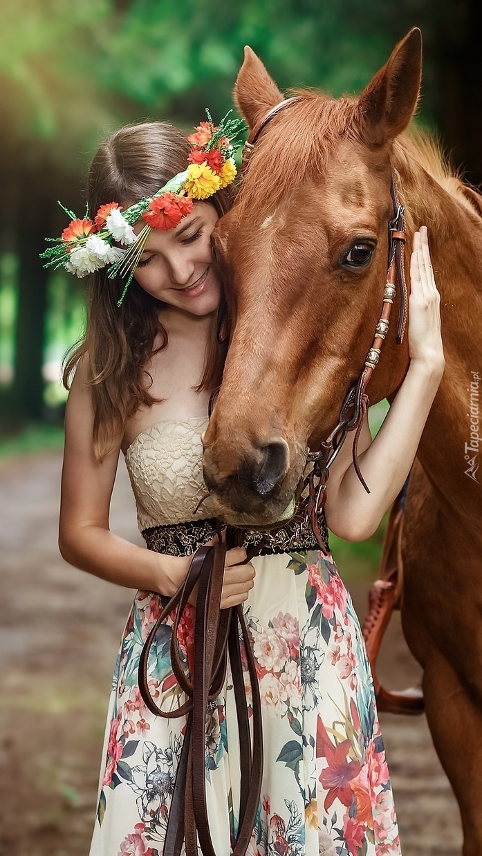 Edytor tapety: Dziewczyna w wianku z koniem
