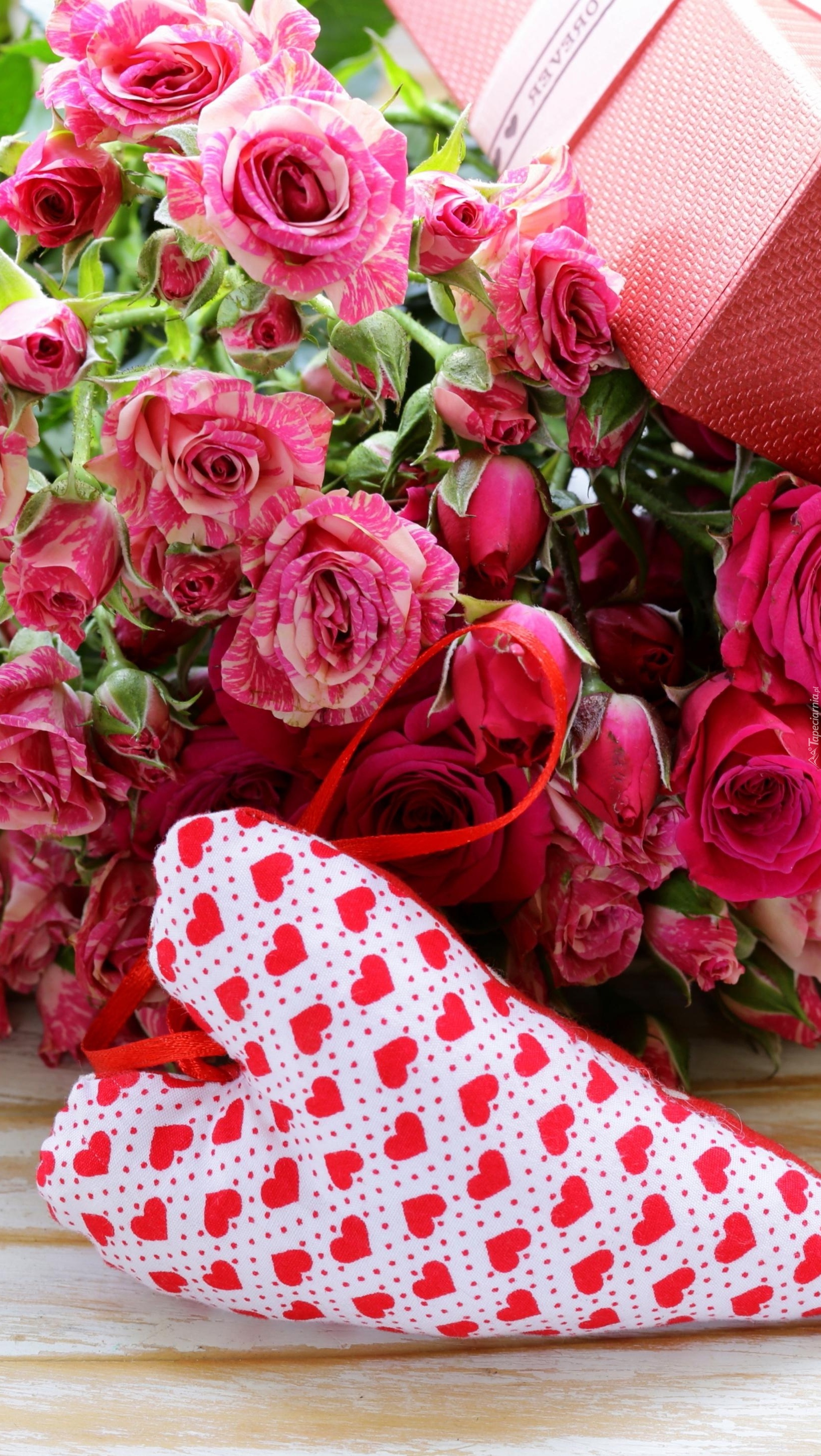 Edytor tapety: Róże, prezent i serce