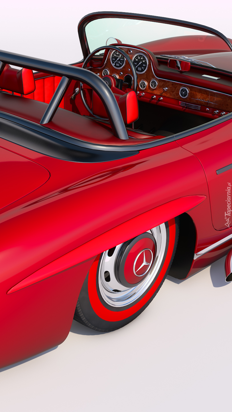 Edytor tapety: Wnętrze zabytkowego czerwonego Mercedesa rocznik 1956