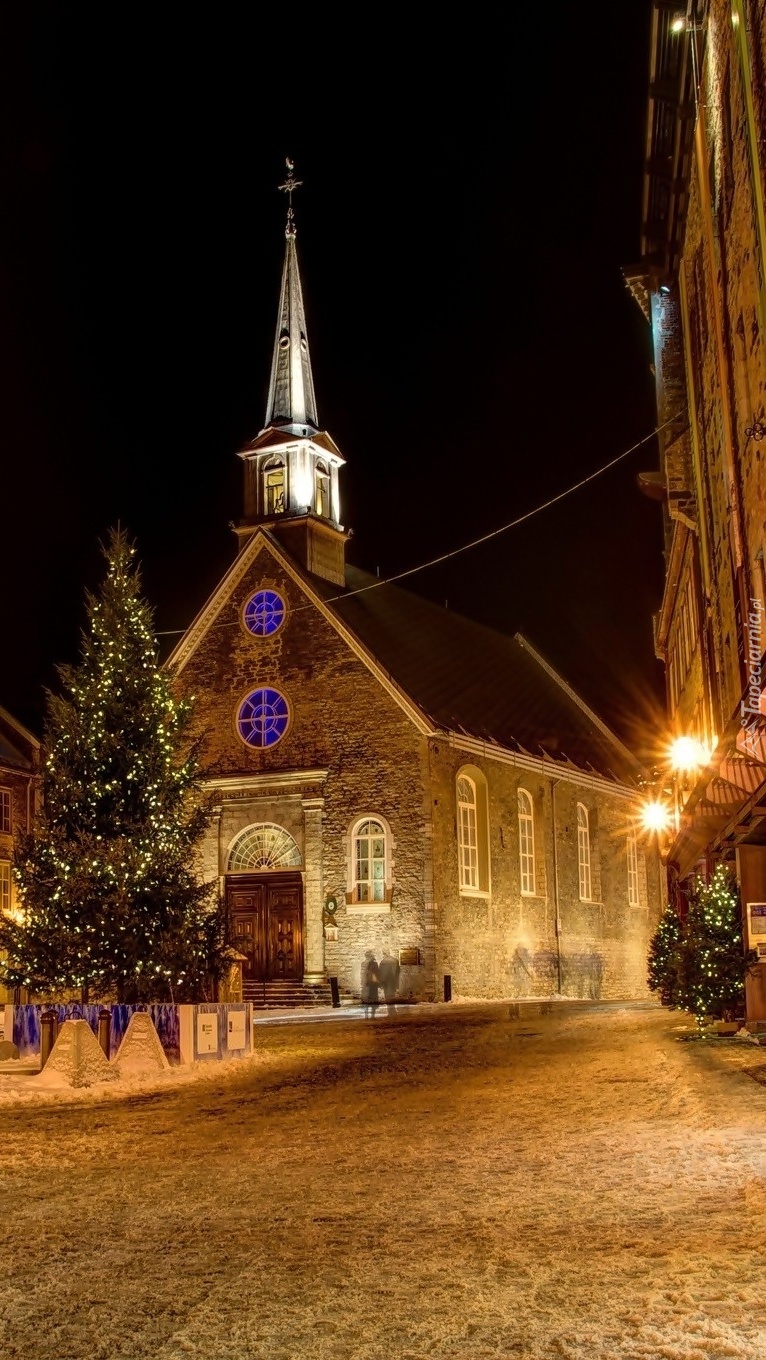 Edytor tapety: Choinka przed kościołem