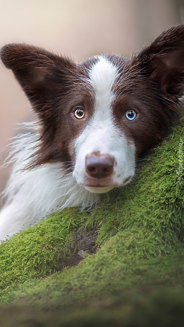 Edytor tapety: Border collie przy omszałym drzewie