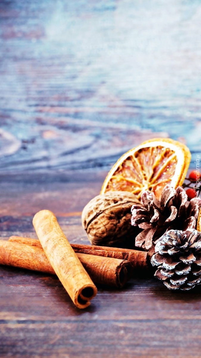 Edytor tapety: Laski cynamonu, cytryna i szyszki
