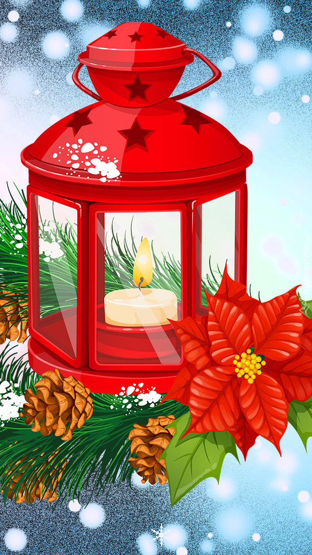 Edytor tapety: Gwiazda betlejemska i szyszki obok lampionu