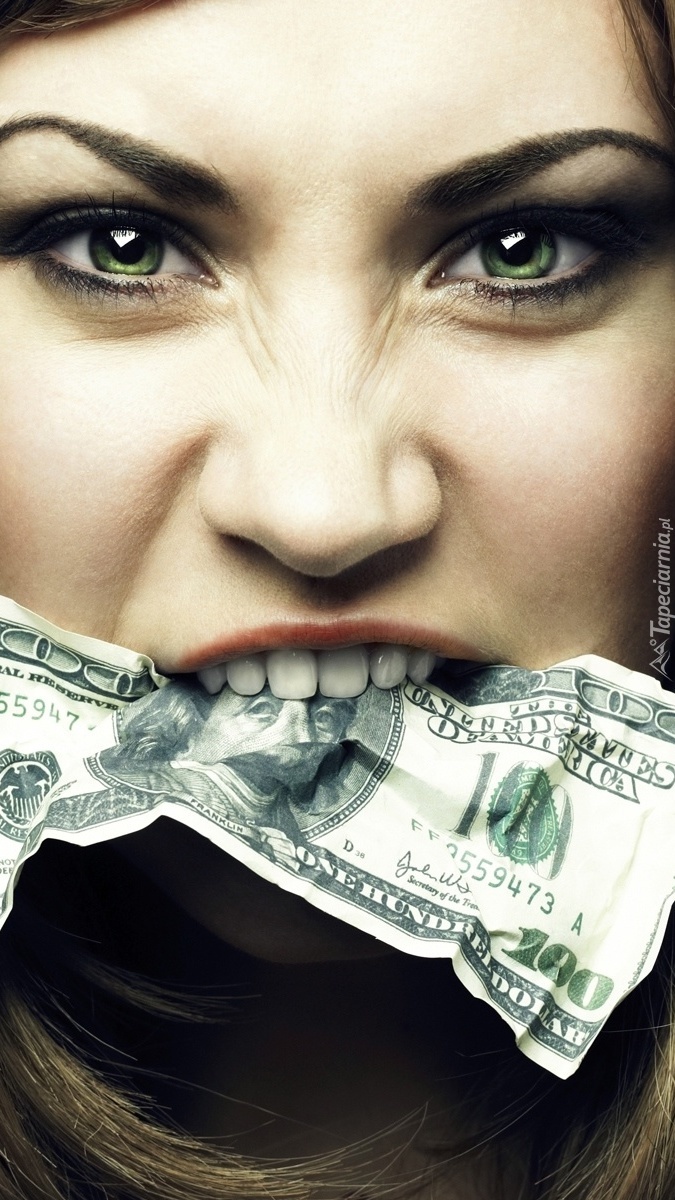 Edytor tapety: Dziewczyna z banknotem w ustach