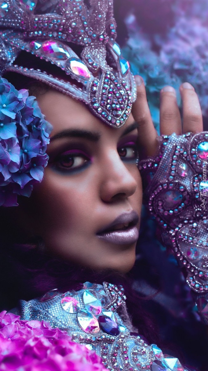Edytor tapety: Kobieta w fioletowej biżuterii