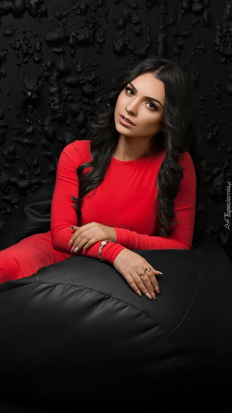 Edytor tapety: Ciemnowłosa dziewczyna w czerwonej sukience