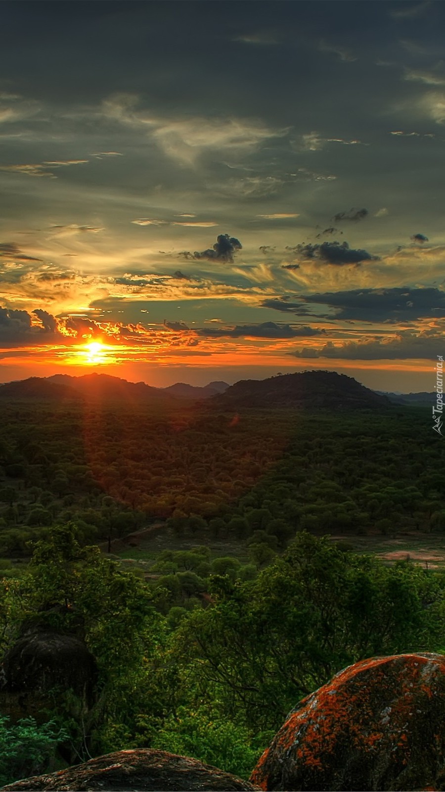 Edytor tapety: Słońce zachodzi za góry