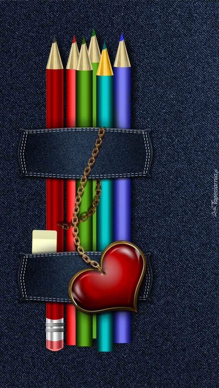 Edytor tapety: Kredki z serduszkiem na łańcuszku