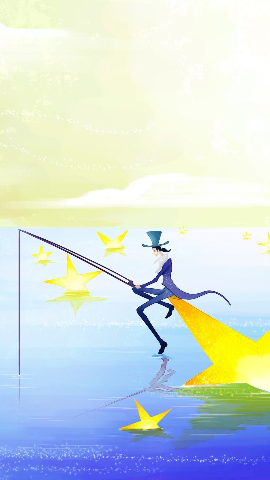 Edytor tapety: Mężczyzna z wędką w grafice