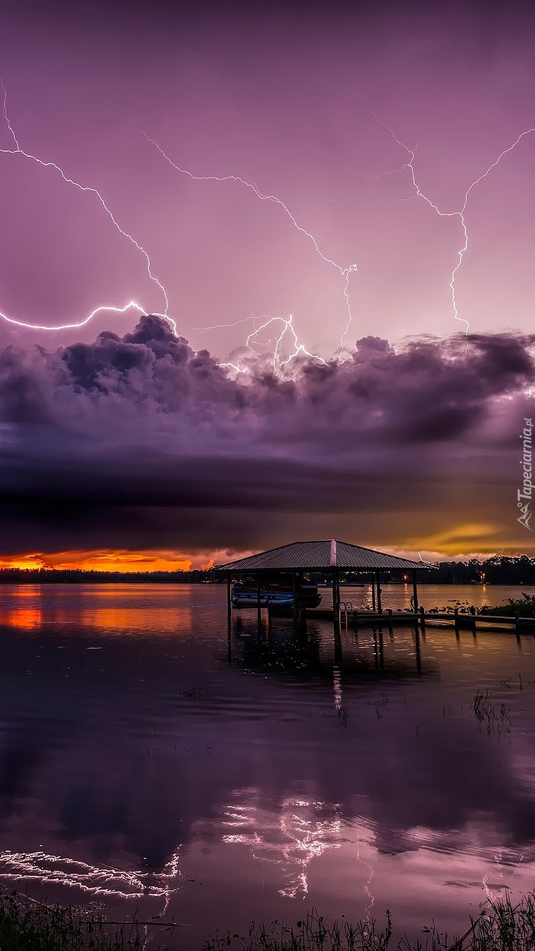 Edytor tapety: Burza z piorunami nad jeziorem
