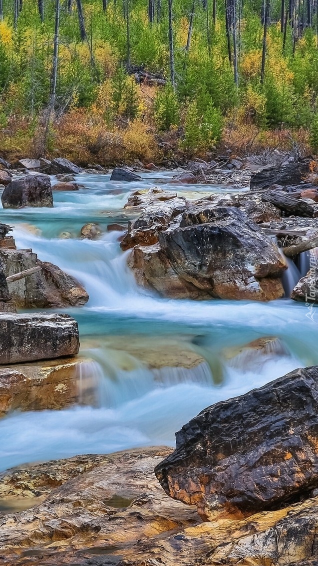 Edytor tapety: Kamienie w leśnej rzece