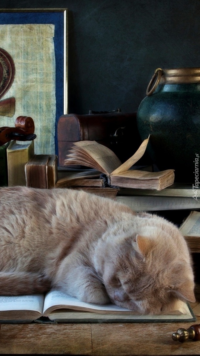 Edytor tapety: Kot śpiący na książce