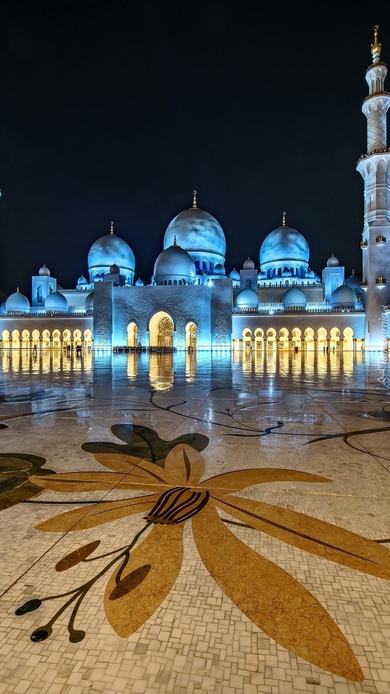 Edytor tapety: Oświetlony meczet w Abu Dhabi