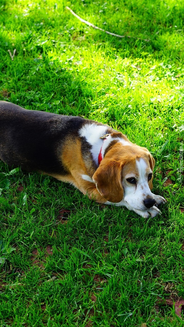 Edytor tapety: Beagle odpoczywający na trawie