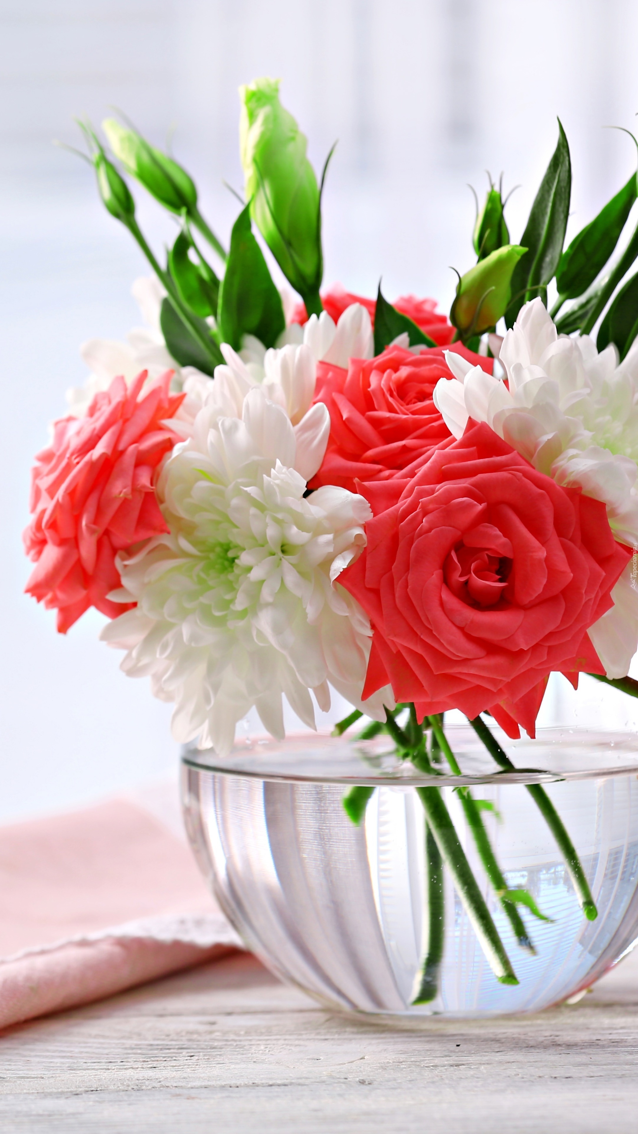 Edytor tapety: Bukiet róż i chryzantem w wazonie