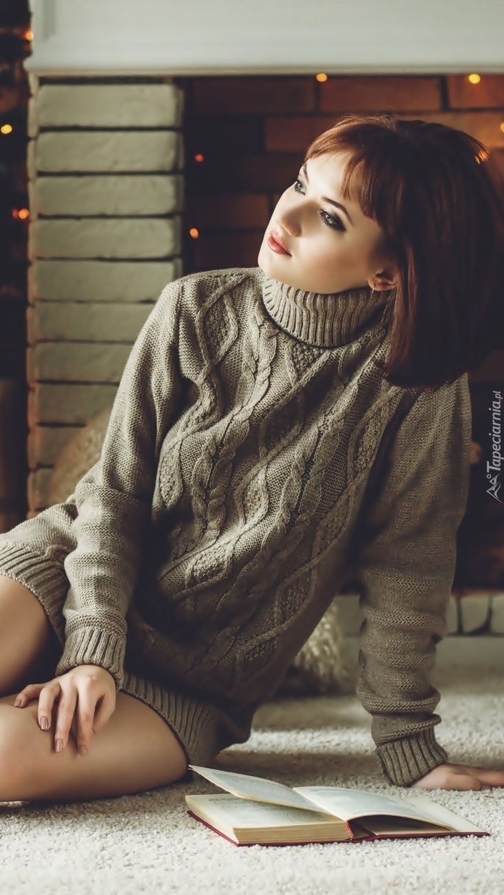 Edytor tapety: Kobieta przy kominku