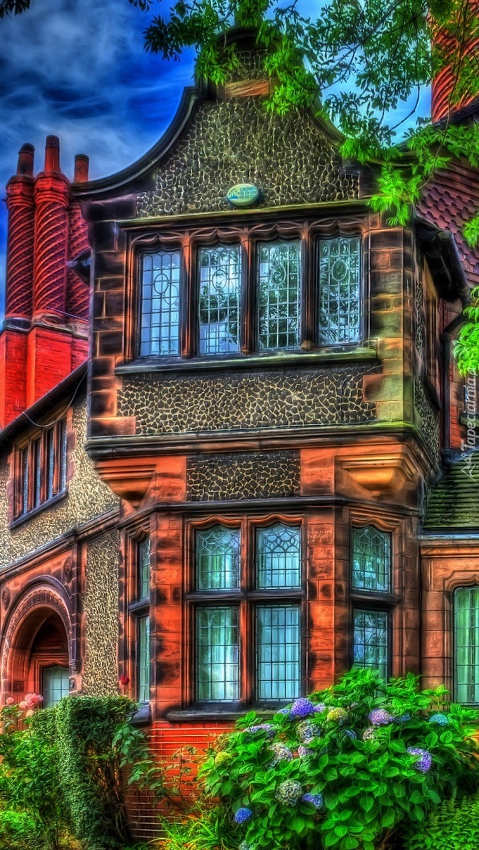 Edytor tapety: Kolorowy dom wśród zieleni