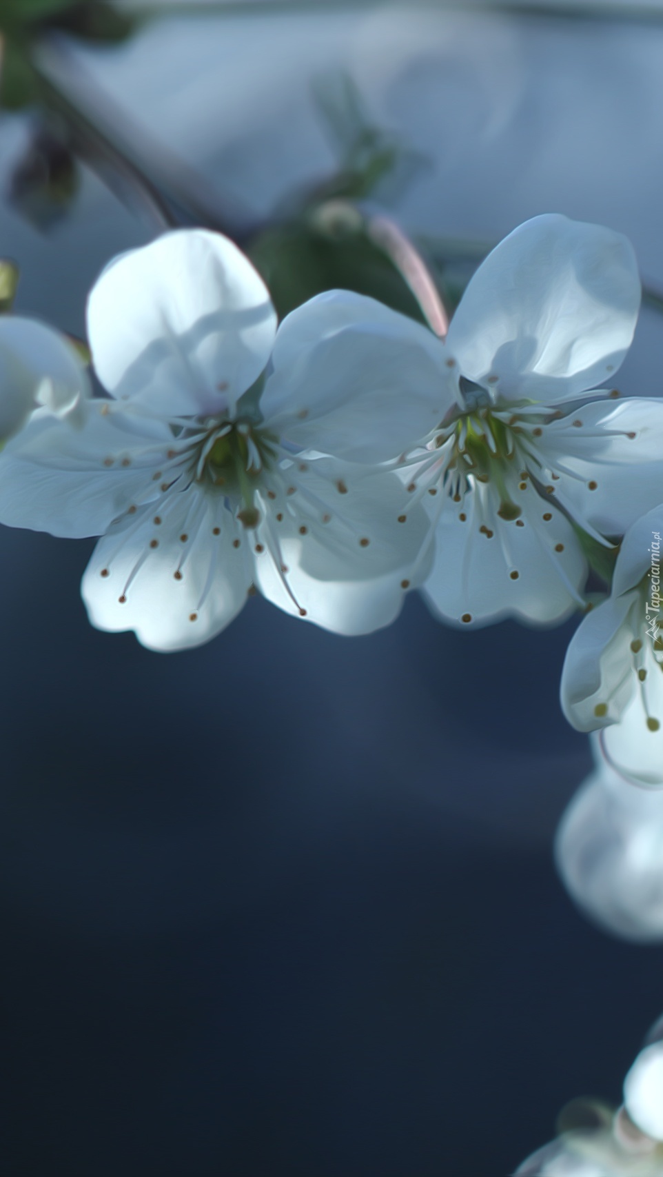 Edytor tapety: Białe kwiaty drzewa owocowego