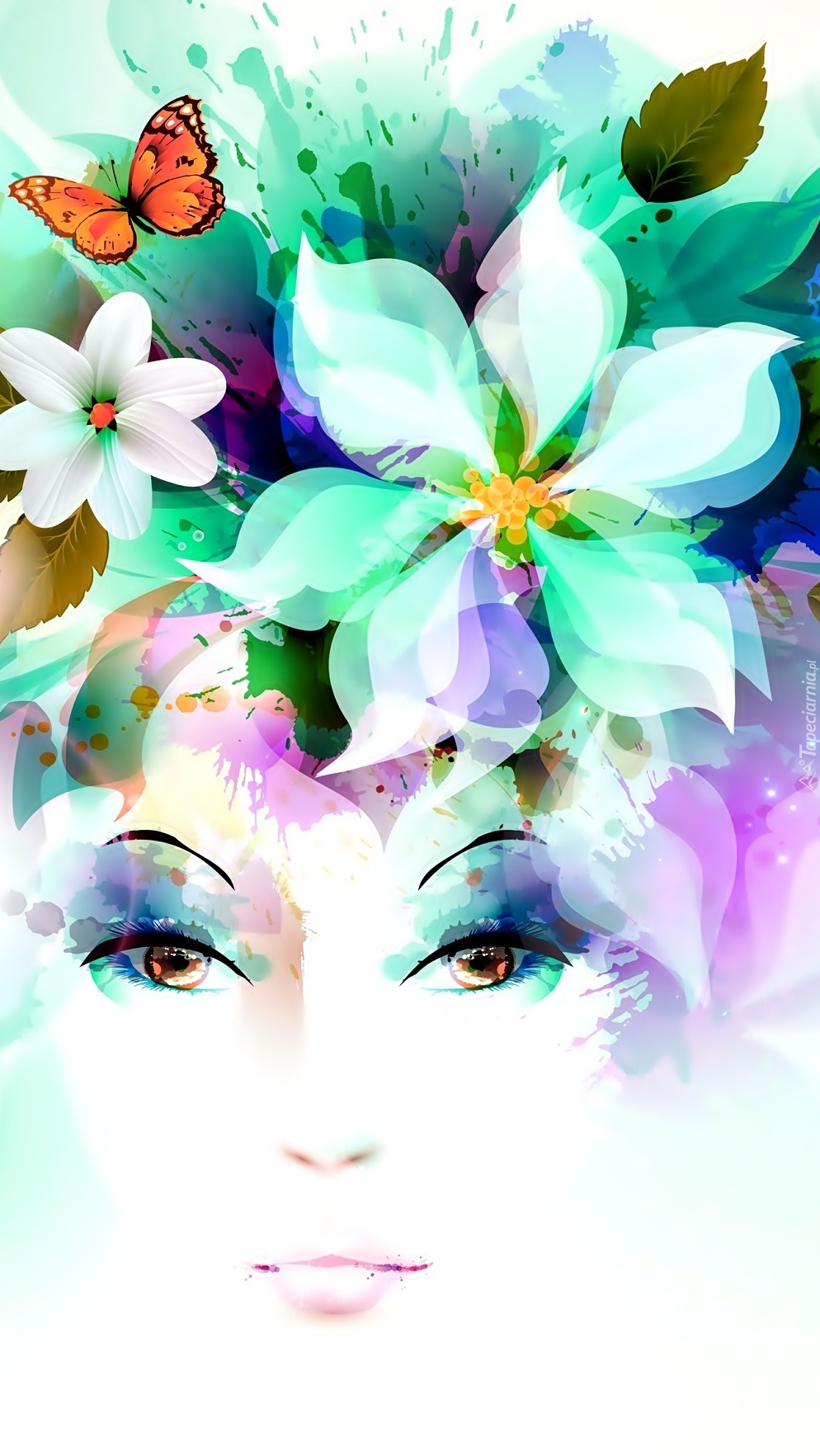 Edytor tapety: Kwiaty i twarz kobiety w grafice